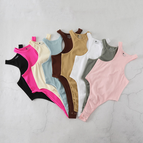 女性用ハイ弾性ソリッドカラースレッドニットノースリーブI型ベストセクシータイトクイックドライタンクトップ